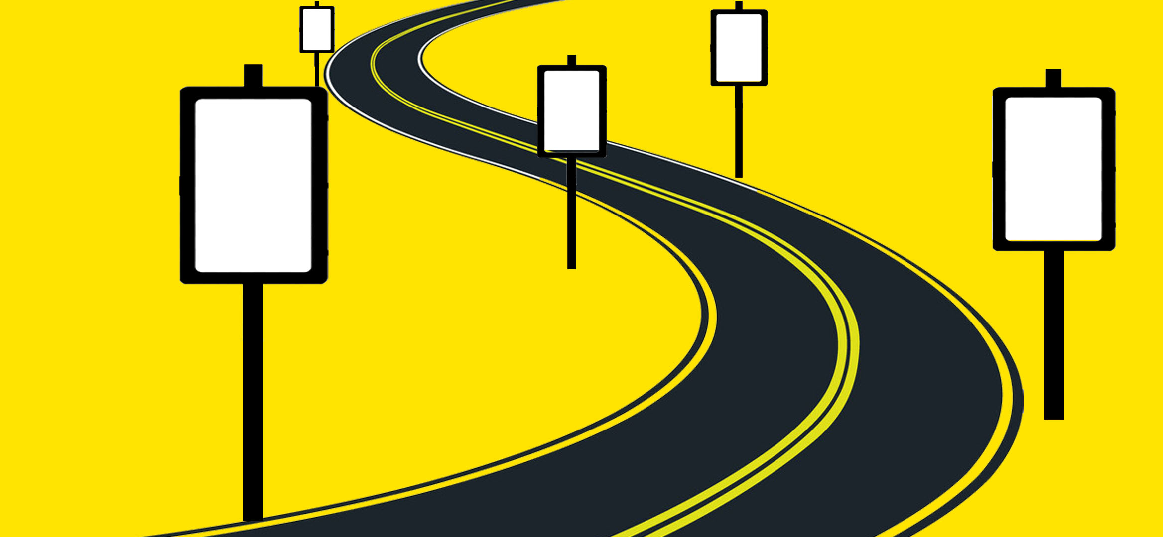 Kiosks support complete flow of communication of a particular campaign through a string of information- right from introduction to benefits to contact information- being sequentially displayed on successive poles. Because these are very small in size, the message has to be precise and legible to fast moving traffic. Longer messages can, however, be placed over 2-3 consecutive boards. Campaigns using 3-5 consecutive boards must have some consistency in communicating as a single campaign.